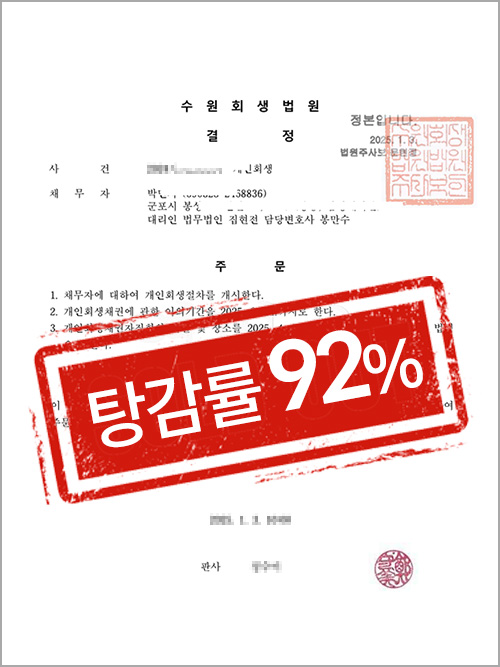 | 탕감 범위 | 원금의 최대 95% 이상 탕감 (3~5년 변제 후 잔액 면책) |
